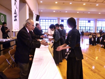 中三剣士への記念品授与